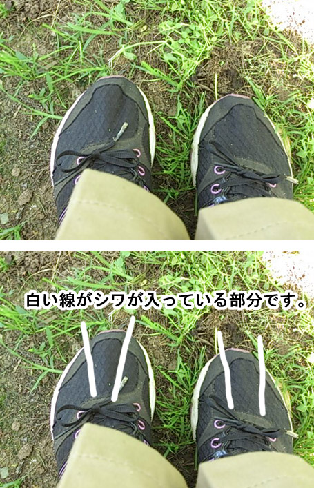 これがまさか、縦にできるの不自然な靴のしわとリンクするなんて。