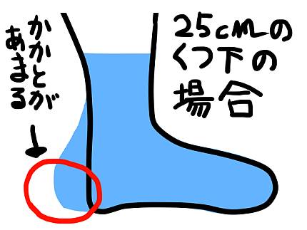 馬鹿正直に足長通りのサイズを選んでしまうと、かかとが余ってしまいます。