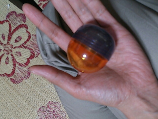 丸いガチャガチャのケースを足でつかむだけである